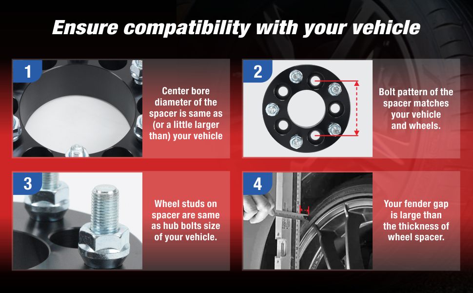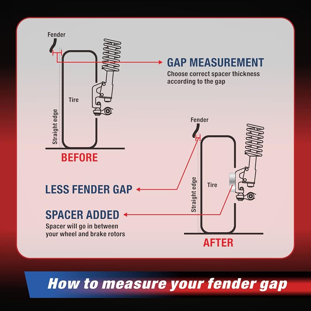 ✅Specification: Bolt Pattern: 4x4" (4x101.6mm), Center bore: 62mm; Thickness: 1" (25.4mm), you should have 1.0" (25mm) of space between the fender and the wheel. Thread: 1/2"x20. Recommended Torque: 75-85 FT/LBS.