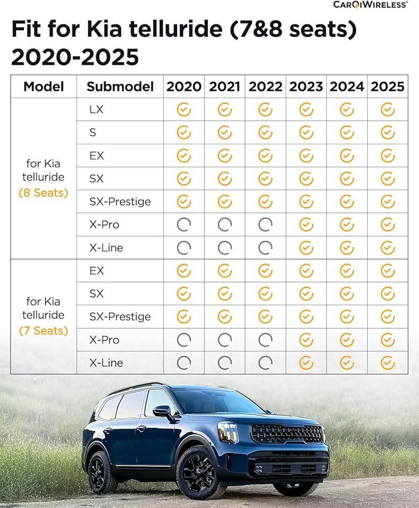 Custom-designed for Kia Telluride 2020-2025: Custom designed based on original vehicle data for both 7-seater and 8-seater models. The floor mats conform closely to the vehicle's contours, securing them firmly without shifting or interfering with seat movement, pedal operation, or safety features