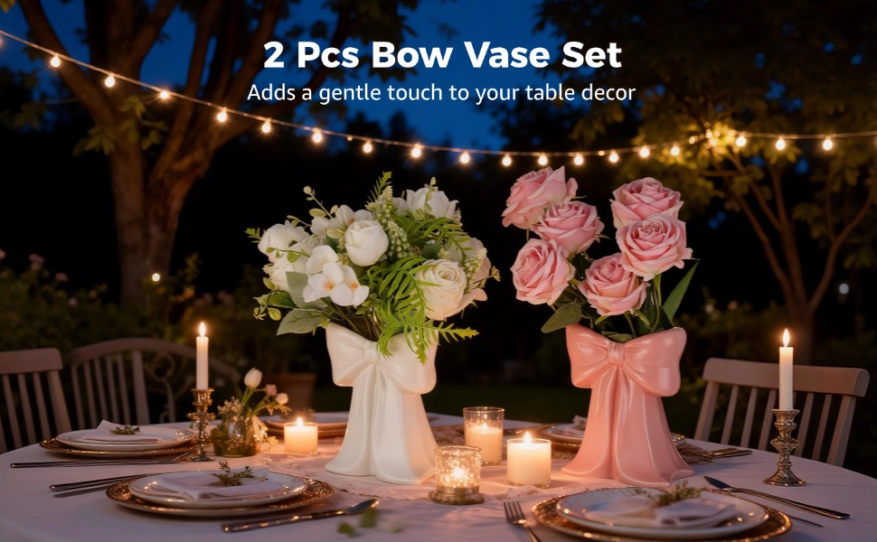 2 PCS Pink Bow Ceramic Vases, Coquette Bud Vase Set in Pink and White, Small Centerpiece Table Decor, Cute Ribbon Design for Flowers, Makeup Brush or Pen Holder, Home Office Wedding