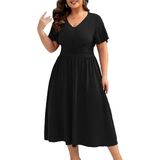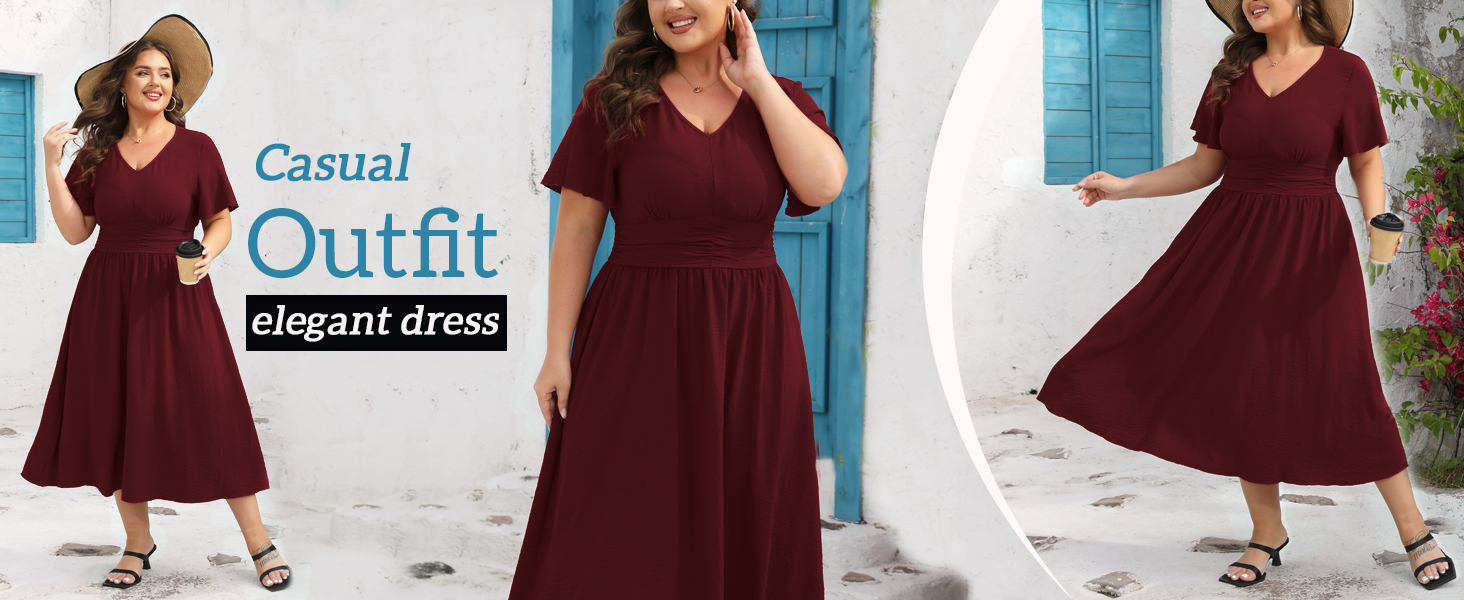 Features: Plus Size long Dress/Plus Size Summer Dresses For Women 2025/Plus Szie Women V Neck Dresses/Plus Size Ruffle Sleeve Dress/Women Plus Size A-Line High Waist Long Dress/Women Plus Size Casual dress/ maternity dress