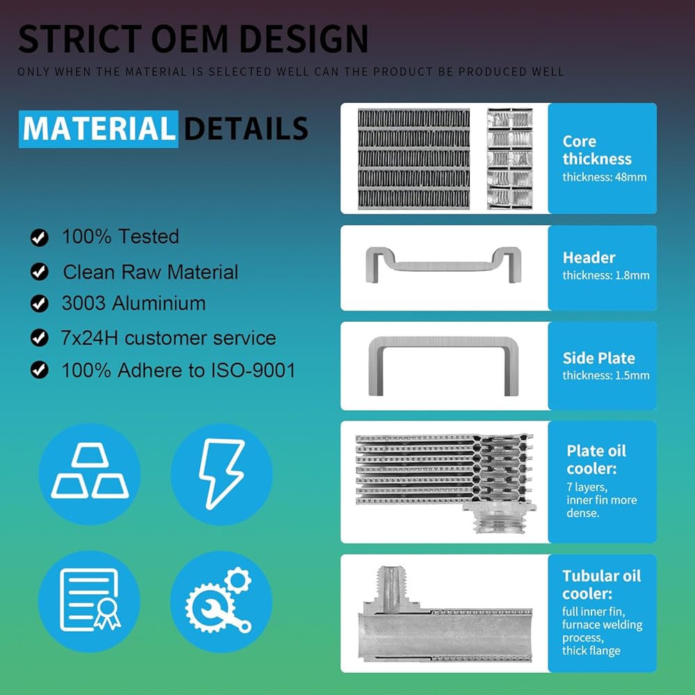 تحتوي مشعاتنا على نوى من الألومنيوم وغالبًا ما توفر الوزن باستخدام الرؤوس البلاستيكية ذات الحشيات. هذا البناء أقل عرضة للفشل من المواد التقليدية. جميع مشعاعات BESUTO مضمونة لتلبية أو تجاوز مواصفات المعدات الأصلية وملاءمتها وأدائها.