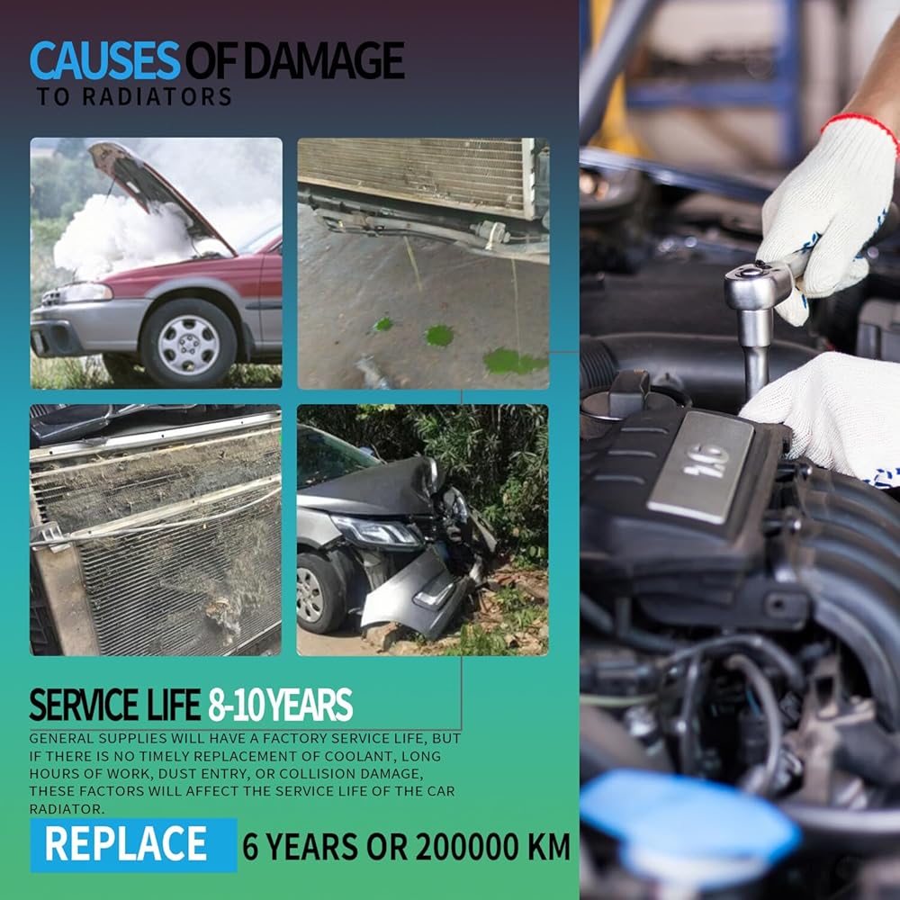 متوسط عمر الرادياتير يتراوح بين 8 سنوات إلى 10 سنوات. ولحسن الحظ، سيعطيك الرادياتير بعض العلامات التي تشير إلى أنه قديم جدًا ويحتاج إلى الاستبدال. 1-تسرب سائل التبريد 2-صدأ سائل التبريد 3-تلف الزعانف 4-ارتفاع درجة الحرارة.إذا كان الأمر كذلك، يرجى استبدال الردياتير في أسرع وقت ممكن