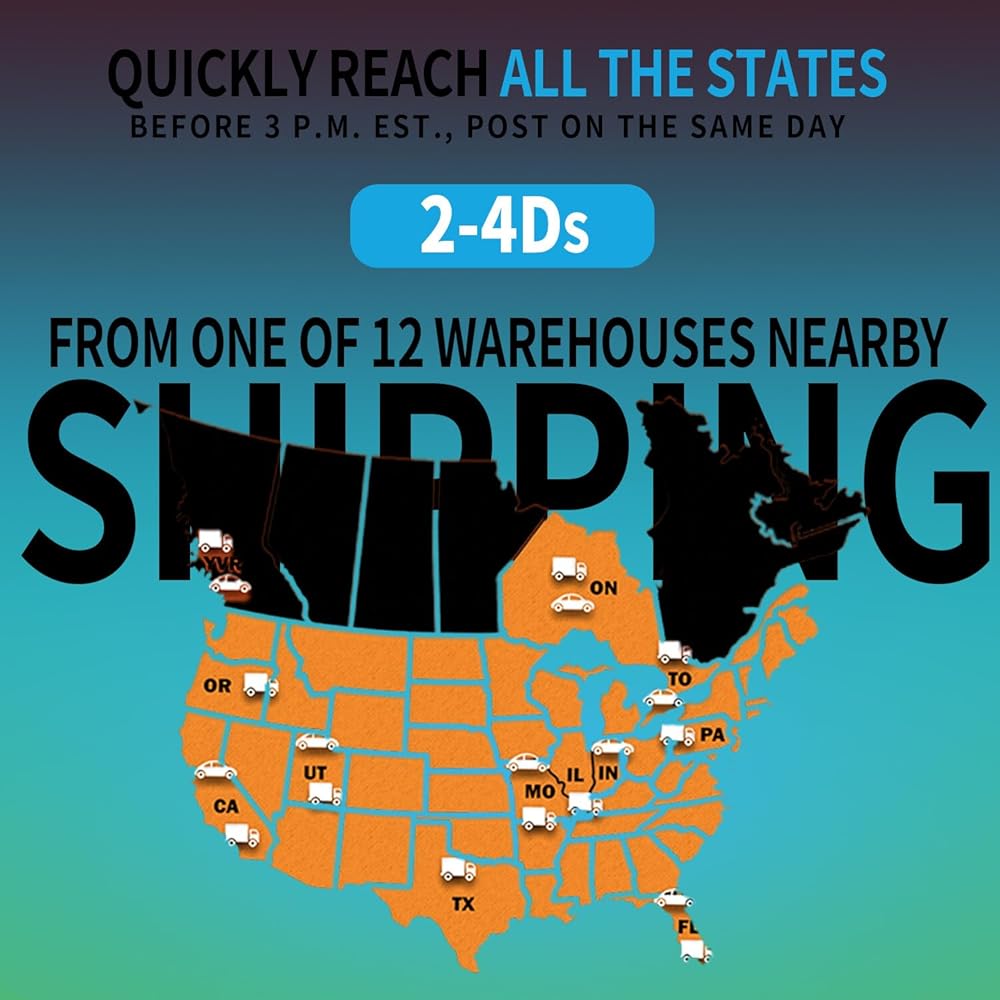 سنختار المستودع الأقرب لإضافتك من ولاية FL/IN/MO/UT/CA/YVR/ON/PA/IL/TX/OR/UT، وسيكون بنفس سرعة خدمات Amazon Logistics