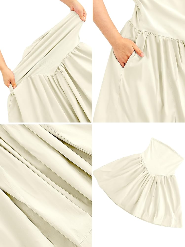 🌺【Material】🌺Strapless dress for women, 95% cotton, 5% elastane, comfortable fabric, has some stretchy, lightweight and very breathable, perfect for summer wear.