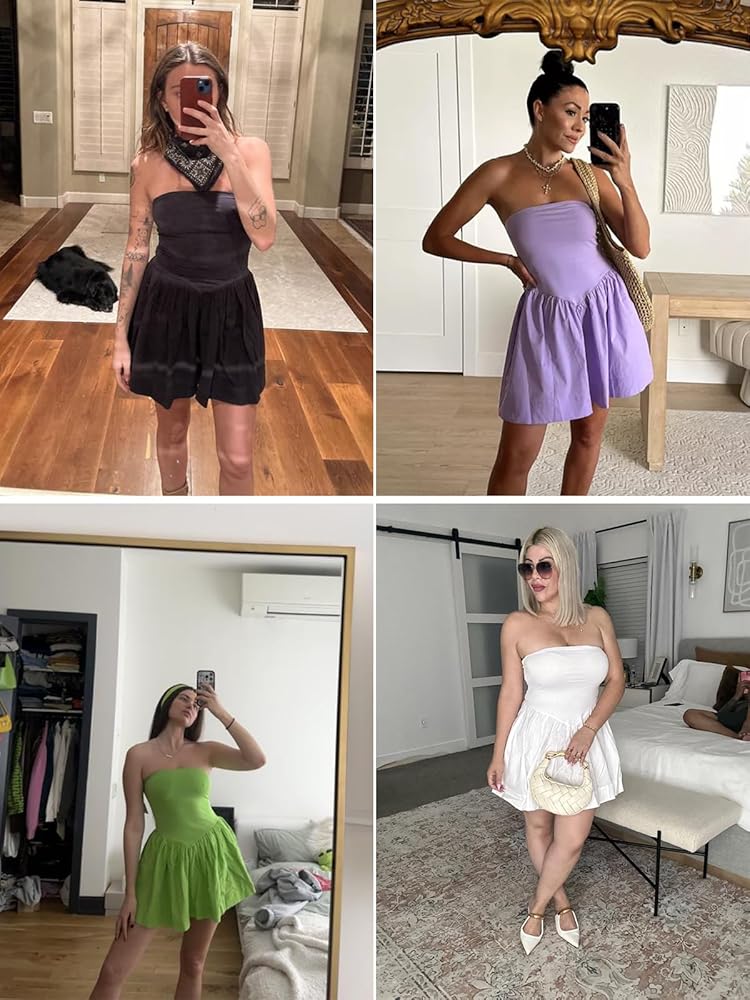 🌺【Size and Tips】🌺The short strapless dress features relaxed fit, S-XL are available,simply machine washable with cold water, do not bleach, dry flat. hang dry for long-lasting wear.