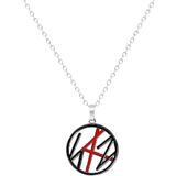 【SPECIFICATIONS】Material: Not specified | Dimensions: Not specified | Weight: Not specified | Finish: Polished silver-tone metal | Design: Circular pendant with black and red enamel logo detailing | Chain Type: Classic link chain with secure lobster clasp closure.