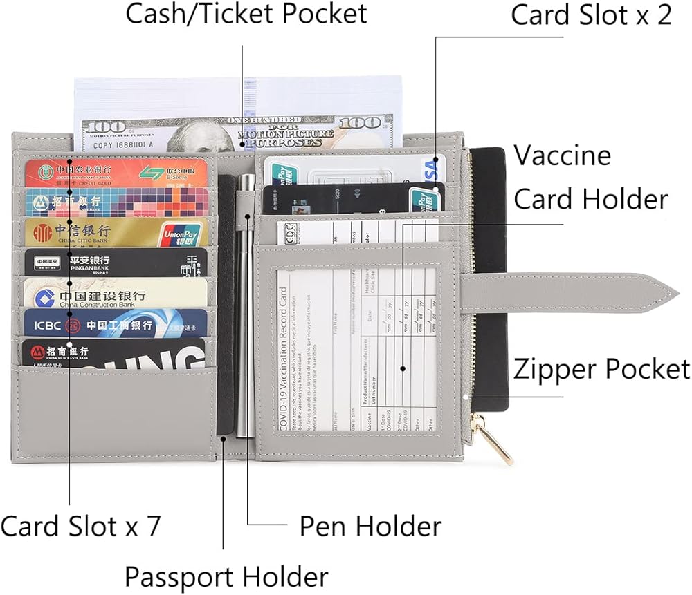 ☆ MULTIPLE COMPARTMENTS: Our rfid travel wallet gives you special space inside for 9 credit cards, 2-3 passports. It has a pen slot and inner pocket, where you can put money, coins, ID card and SIM card. The travel organizer also provides a side zip pocket which works great for storing quick-access items like an loose money, airline ticket and boarding pass. No more panicking as you put down your pockets and dig through your bags.