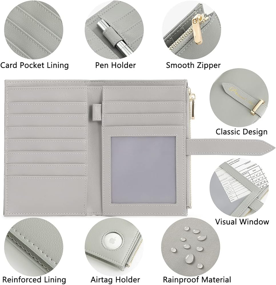 VanFn Airtag Passport Holder, RFID Travel Passport Wallet, Family Passport Holder, Ladies Bifold Air Tag Wallets, Slim Leather Credit Card Wallet For Women, Trip Document Organizer P.Travel Series
