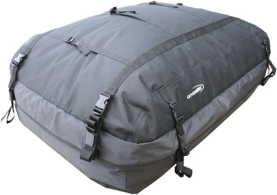 This cargo bag is weather-resistant, not water-proof, and is warranted for use in basket style cargo racks (not for strapping directly on rooftop)
