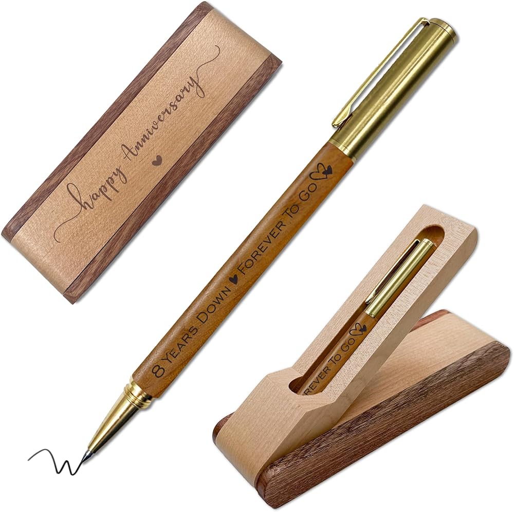 8th Anniversary Ballpoint Pen Set Gift for Couple, 8 Year Bronze Anniversary Keepsake, 8 Year Anniversary Wedding Gifts for Wife, Husband, 8 years Marriage Gift Executive Pen Present for Men Women