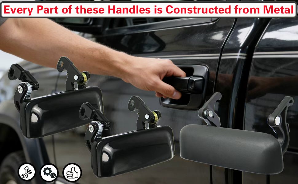 All metal exterior front driver passenger door handle set compatible with 1998-2000 Ranger 2001-2005 Ranger Edge 2005-2009 Ranger FX4 2005-2007 Ranger STX 2004 Ranger Tremor 2001-2011 Ranger (submodel: XL XLT) 2006-2011 Ranger Sport