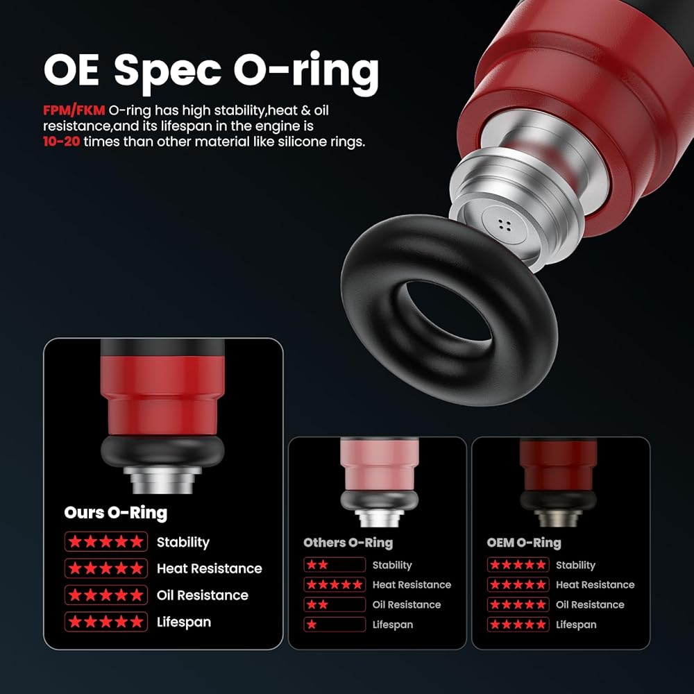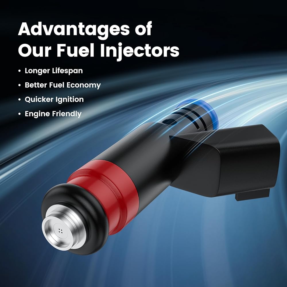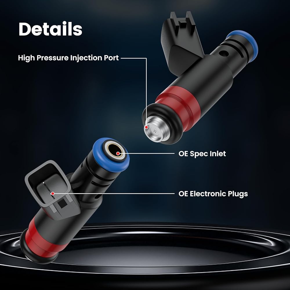 Specification:Set of 8 OE Spec replacement fuel injectors; 4 Injection ports as original part; Every fuel injector is tested before shipment; Direct replacement, easy installation; A long service life & stable working; Helps resolve idle issues, check engine light alerts, error codes, fuel efficiency