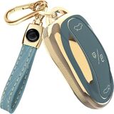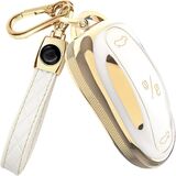 Lucrum Compatible with Tesla Model X Key Fob Cover & Leather Keychain - TPU Keyfob Case for Model X in Kuwait