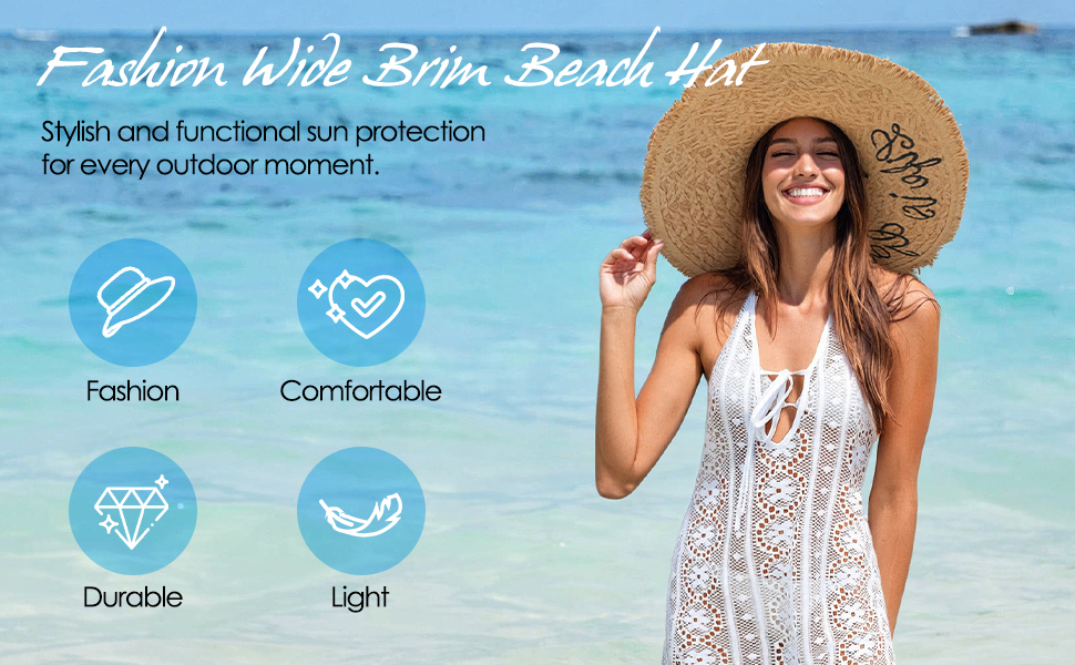 Versatile Beach Must Have: Classic solid color with delicate details pairs well with any summer outfit. This stylish beach hat is ideal for beach, vacation, camping, gardening and daily outdoor activities.