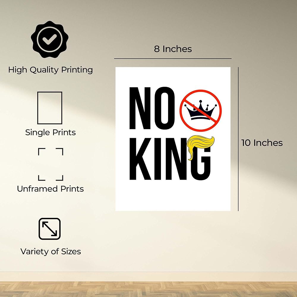InkFlow Posters No King Poster - Bold Political Artwork for Statement Wall Art, Home, Living Room, Bedroom, or Office Décor - Strong Political Message - 08x10 Unframed Canvas Wall Art