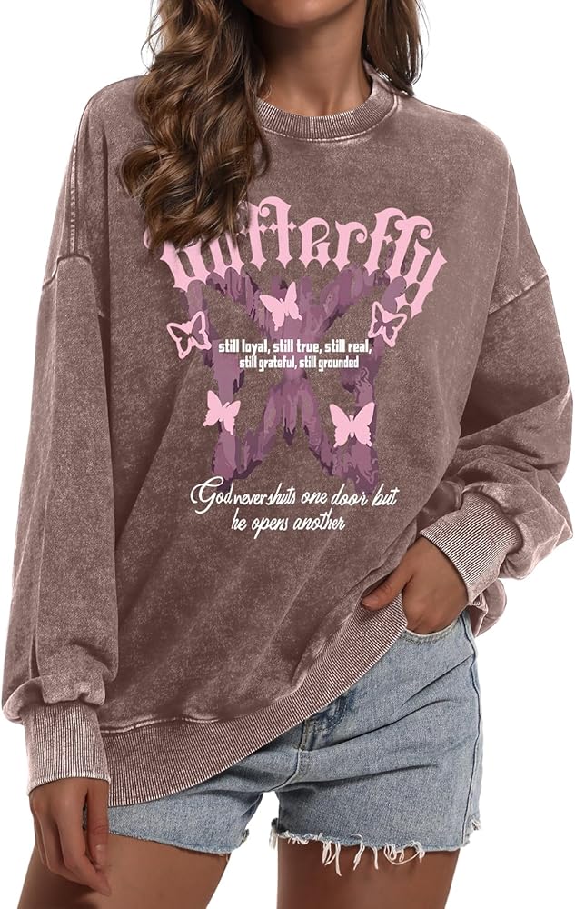 Tips: Oversize style women oversized baggy butterfly graphic pullover for women. Hand wash or gentle machine wash in cold water, hang or line dry,do not bleach