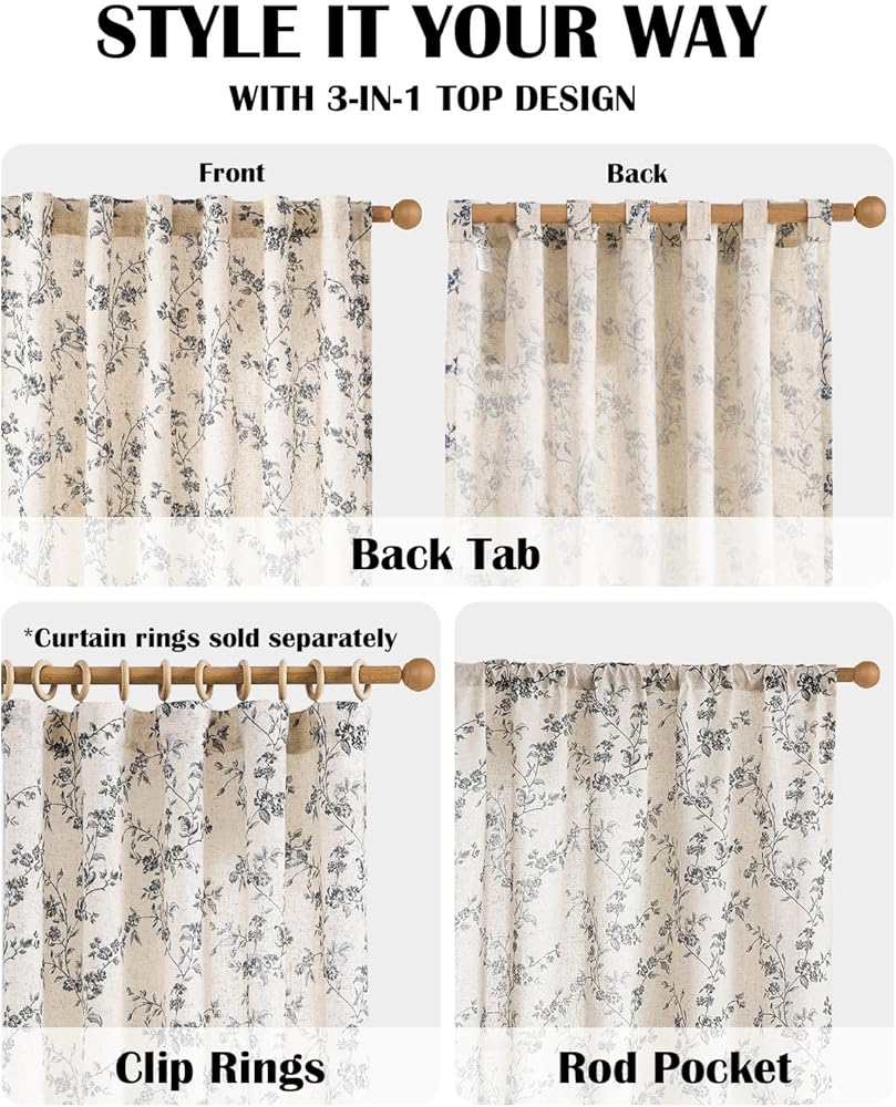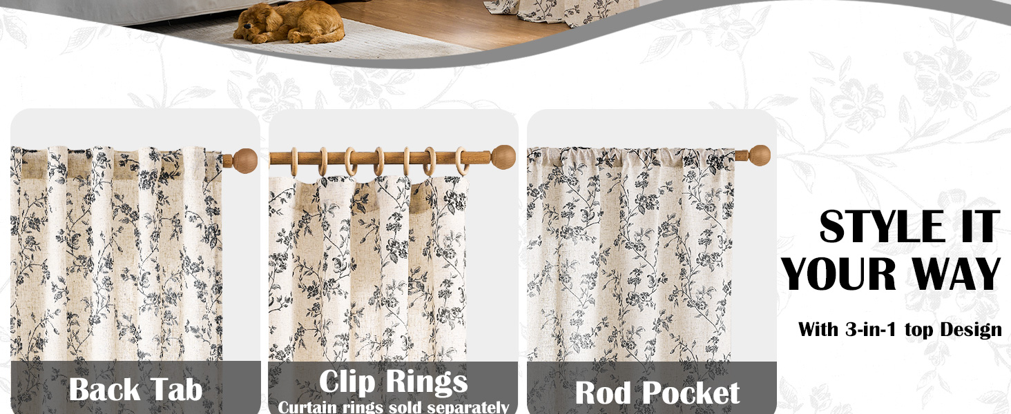 Back Tab Style: Our linen textured curtains feature 3 inch pole pocket head to coordinate with most window curtain rods, easy to hang and maintain. Each linen curtains offers 2 hanging options to meet your needs: rod pocket or back tab, and also work with rings or clips (not included)