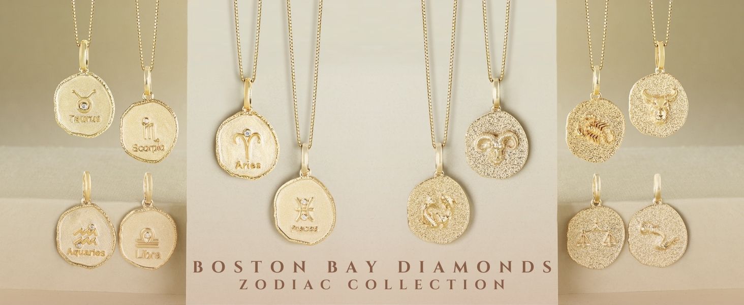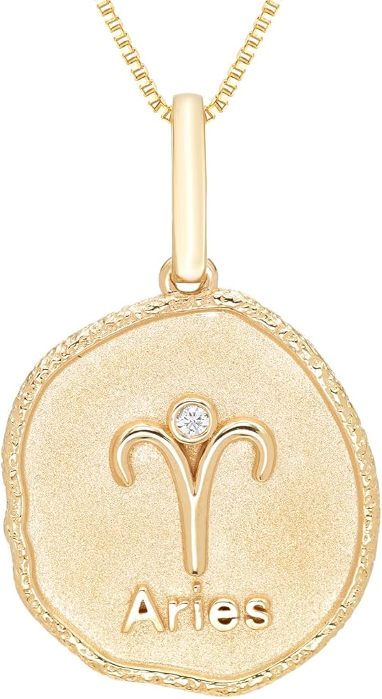 Boston Bay Diamonds Reversible Double Sided Freeform Round Diamond Zodiac Astrology Pendant Necklace in 14K Yellow Gold Plated Sterling Silver with 18 Inch Box Chain