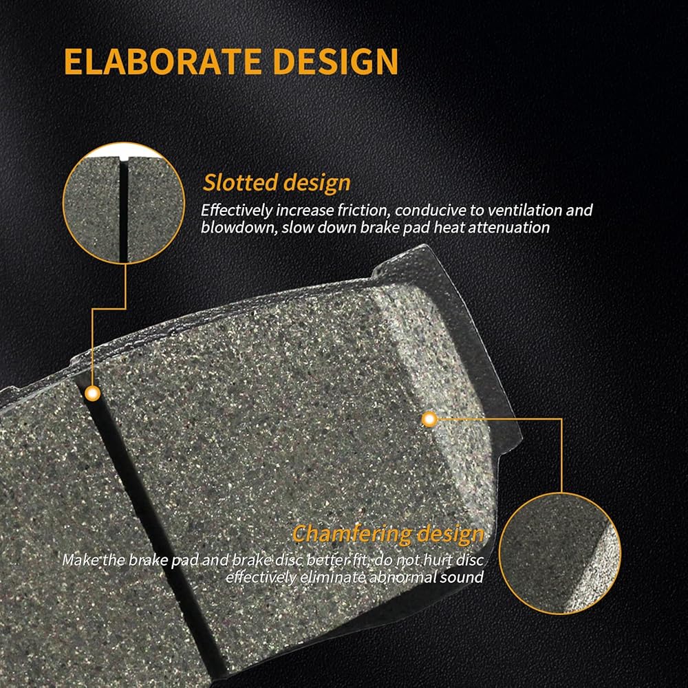 • 【EXCELLENT MATERIAL】:High-density ceramic formula front and rear brake pads are made of high-tech materials such as large-grain graphite/brass/advanced ceramics (non-asbestos), semi-metal, etc. with high temperature resistance, wear resistance, braking stability, repairing damaged brake discs, environmental protection, and noise-free use Long life and other advantages overcome the shortcomings of traditional brake pad materials and technology