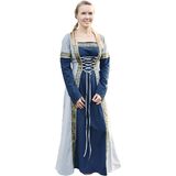 AUTHENTIC MEDIEVAL DESIGN Two-tone gown inspired by historical garments; narrow pointed sleeves and decorative trim create a refined medieval look. Ideal for Renaissance fairs, LARP, reenactment, cosplay and fantasy characters.