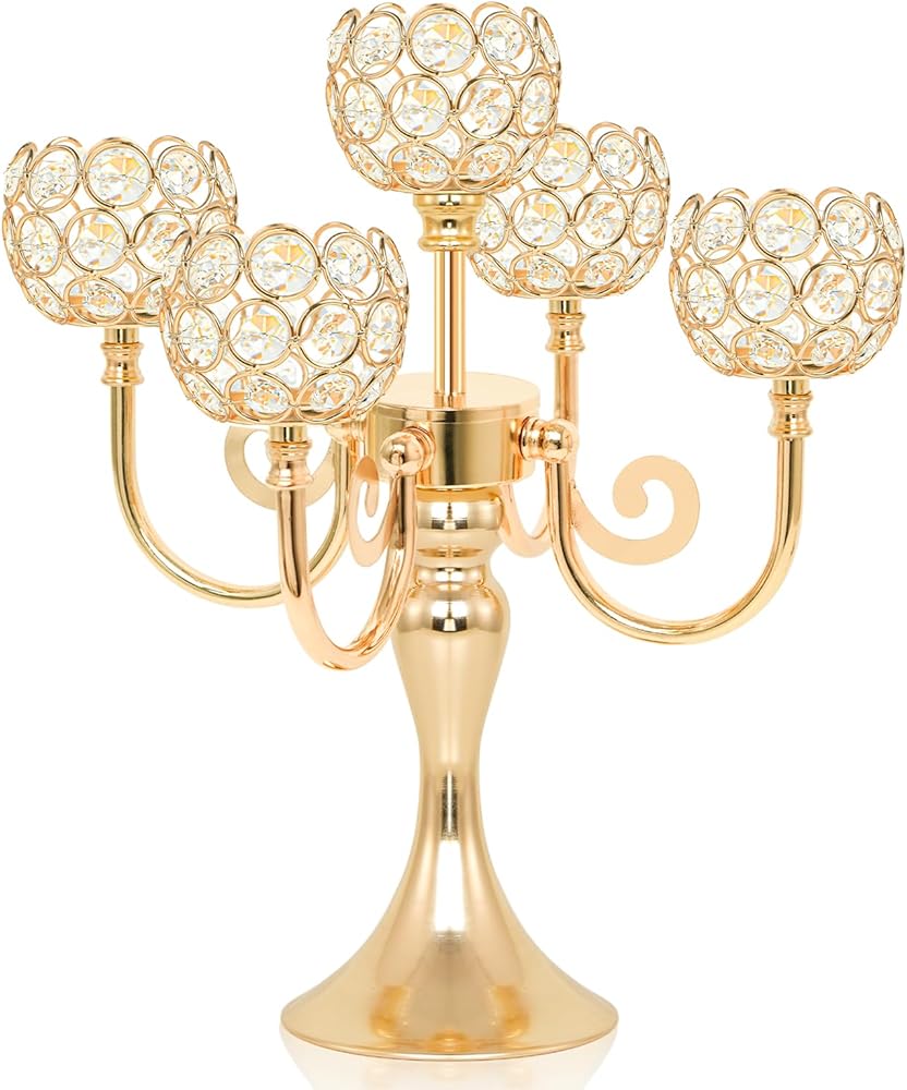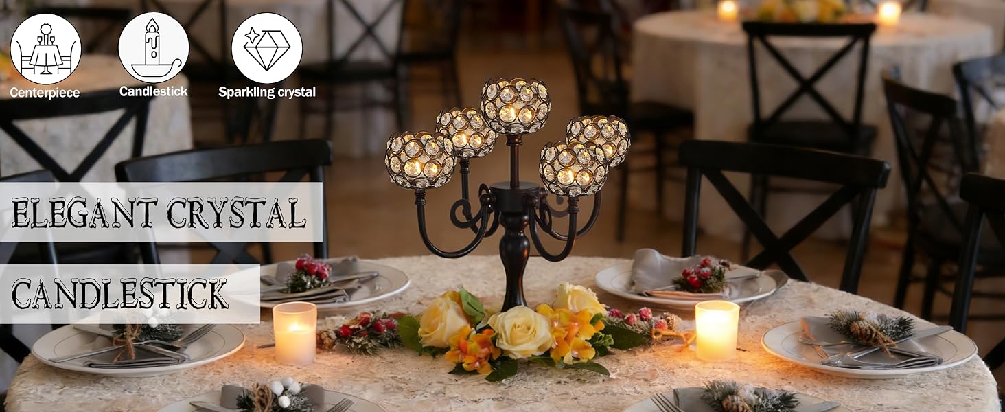 - Shimmering Crystals & Candle Compatibility:3.1” crystal bowls (per arm) fit standard 1.8” tealights (real wax/LED). Light-reflecting crystals cast a soft, glowing ambiance when lit.