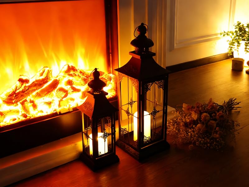 LANTERNS DECORATIVE INDOOR&OUTDOOR - This LED charming lantern will suit both indoor & outdoor decor. You can decorate your front porch with this lantern, whether it looks great on a tabletop or on the porch step. Or place it on your doorway path to illuminate your path and entrance. Lanterns can be displayed indoors or outdoors under a covered area. Ideal as an indoor decoration too, use it to decorate your shelf, fireplace, windowsill, living room, or dinner party to add a warm touch to your home.