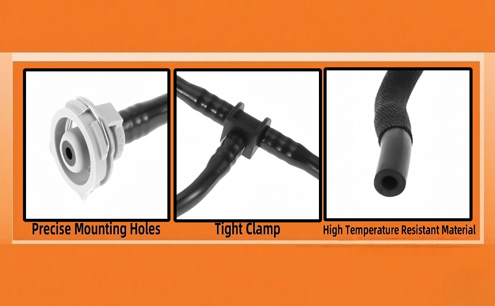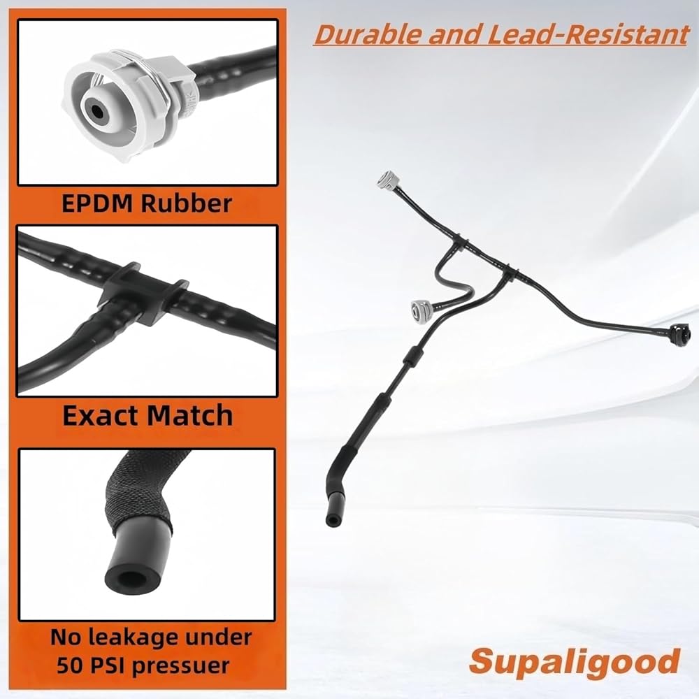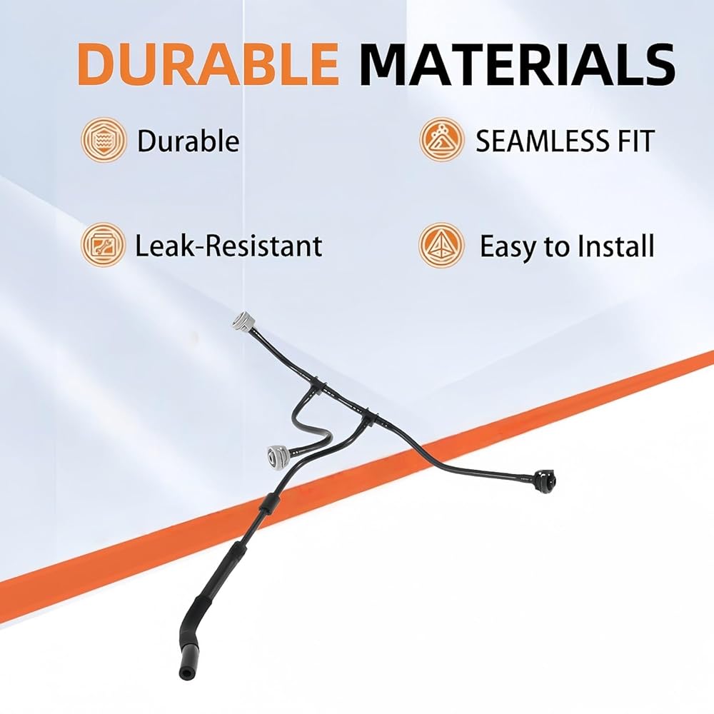 [ Durable ] Made from EPDM rubber and high-density polyester Fiber, they withstand extreme temperatures (-40°F to 200°F) and resist corrosion, ensuring long-lasting performance. The coolant overflow hose resists drying-induced cracks and stops high-temperature softening