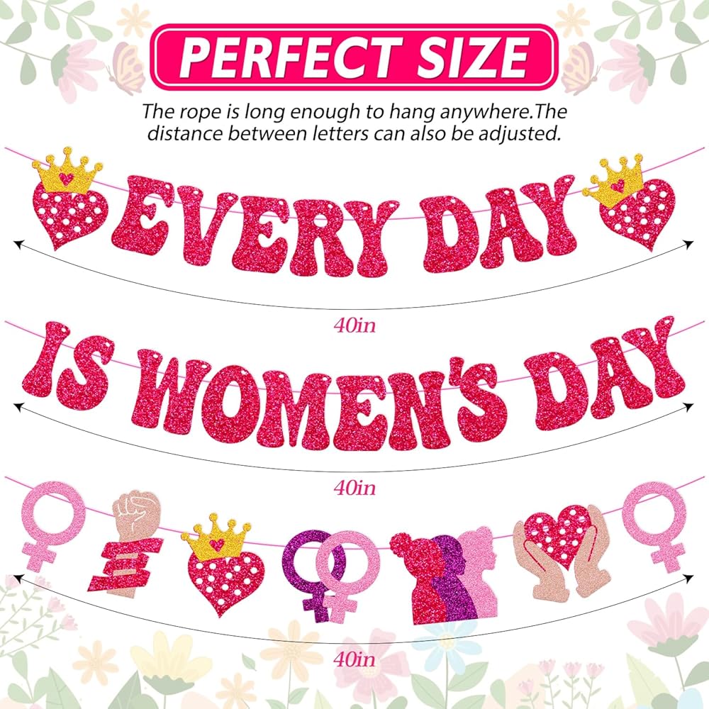 Pre-strung: NO DIY! Every Day is Women's Day Banner will come pre-assembled, so you can hang it directly. You can also adjust the letters or banners to your desired length