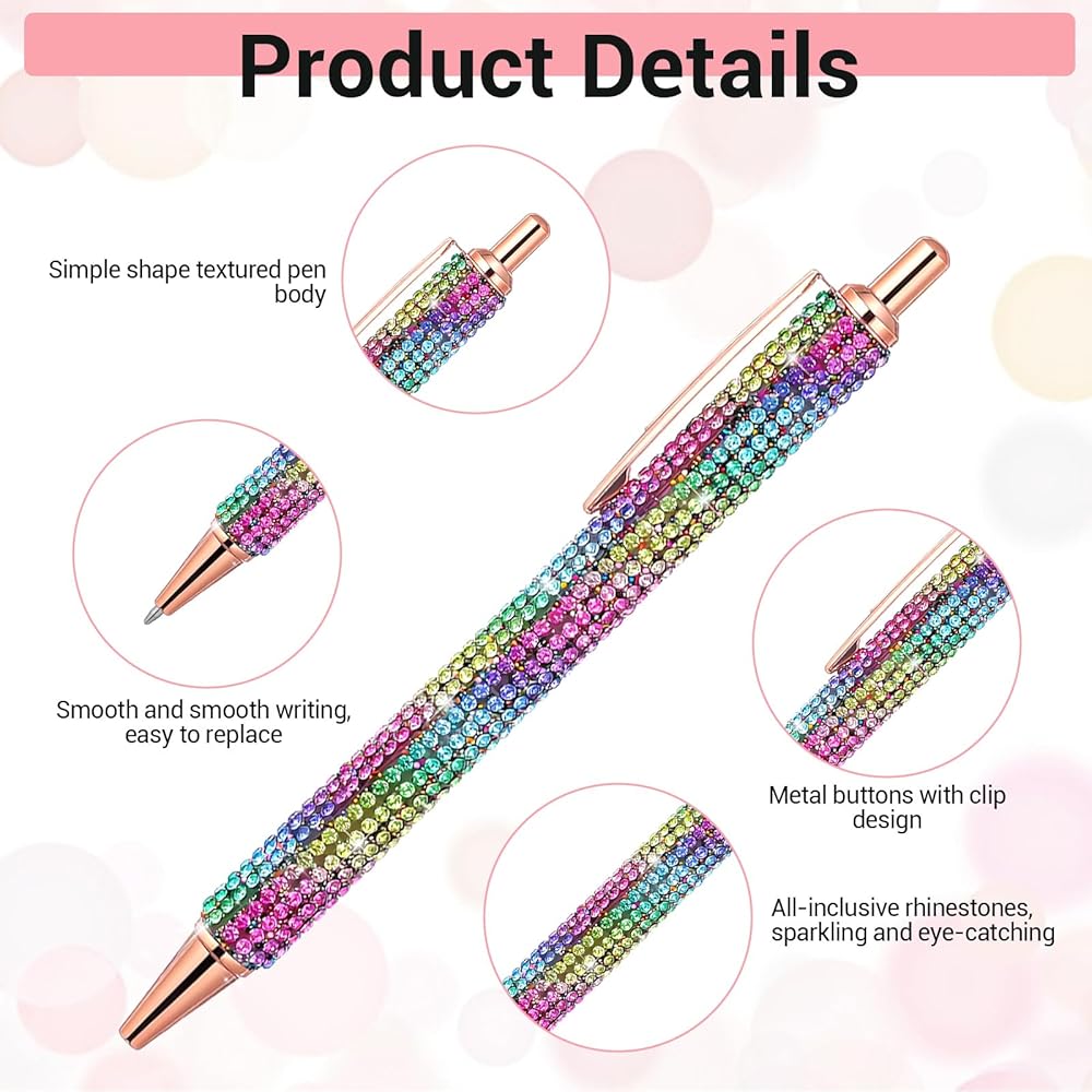 Stylish and eye-catching with sparkling rhinestones and a metal barrel: The barrel is made of metal and inlaid with multi-colored rhinestones for a dazzling and fashionable look; a metal clip at the top makes it easy to carry, combining aesthetics and practicality.