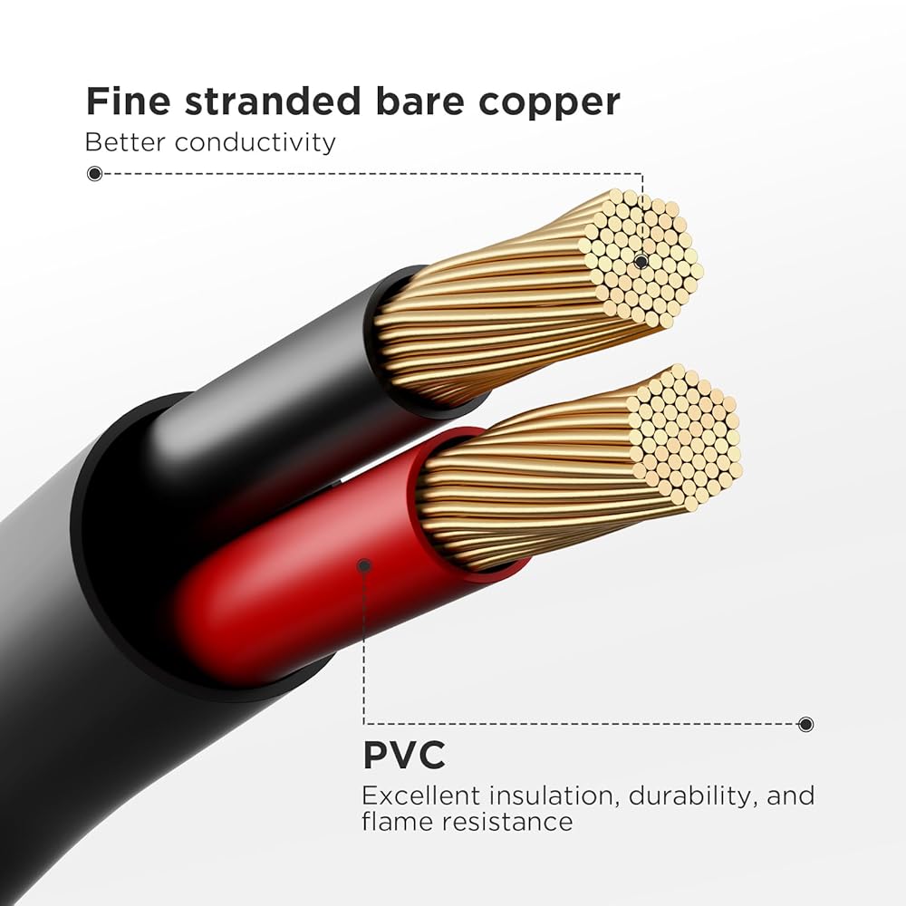 Dual-Color Design: The battery cable features a clear dual-color design—red for positive and black for negative—ensuring easy identification during installation. Its silicone insulated jacket provides high tensile strength, excellent heat resistance, and superior electrical insulation performance, making it a reliable choice for any application.