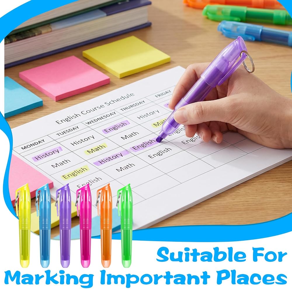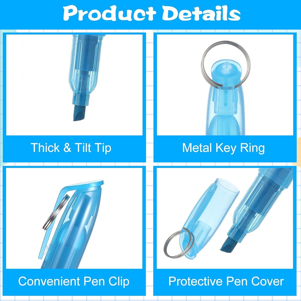 【Portable & Lightweight】- The small dry erase markers measure about 3.54 inches/9 cm in length, making it comfortable to hold and easy to fit in your pocket, and each mini highlighter contains a ring on the top, you can attach it on the keychains easily.