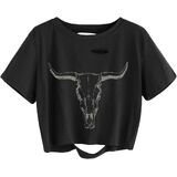 Occasion: distressed crop tops shirts suit for Summer; women skeleton shirt great for school, vacation, holiday, date, sports, relax, home, shopping or daily casual wear