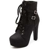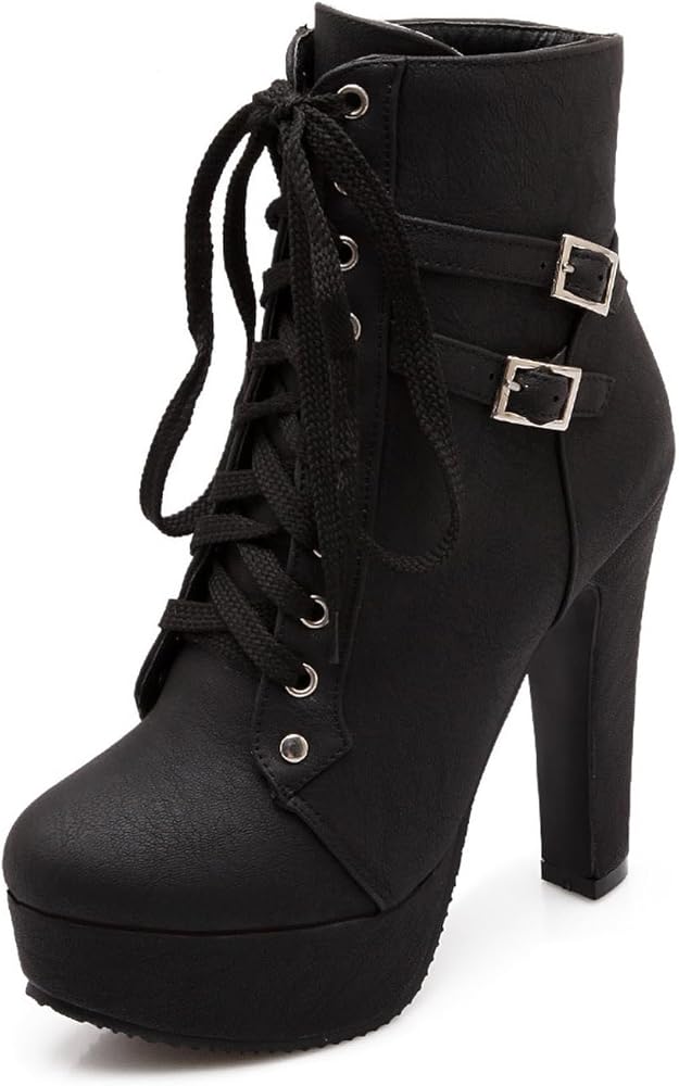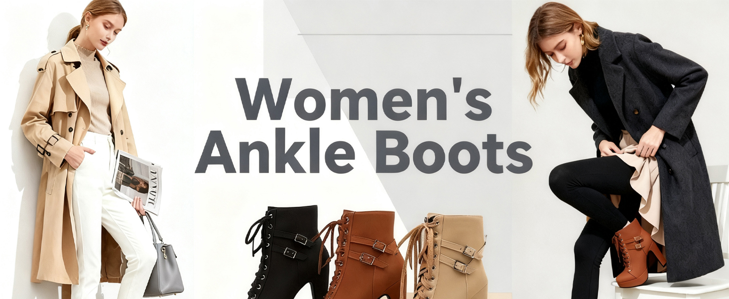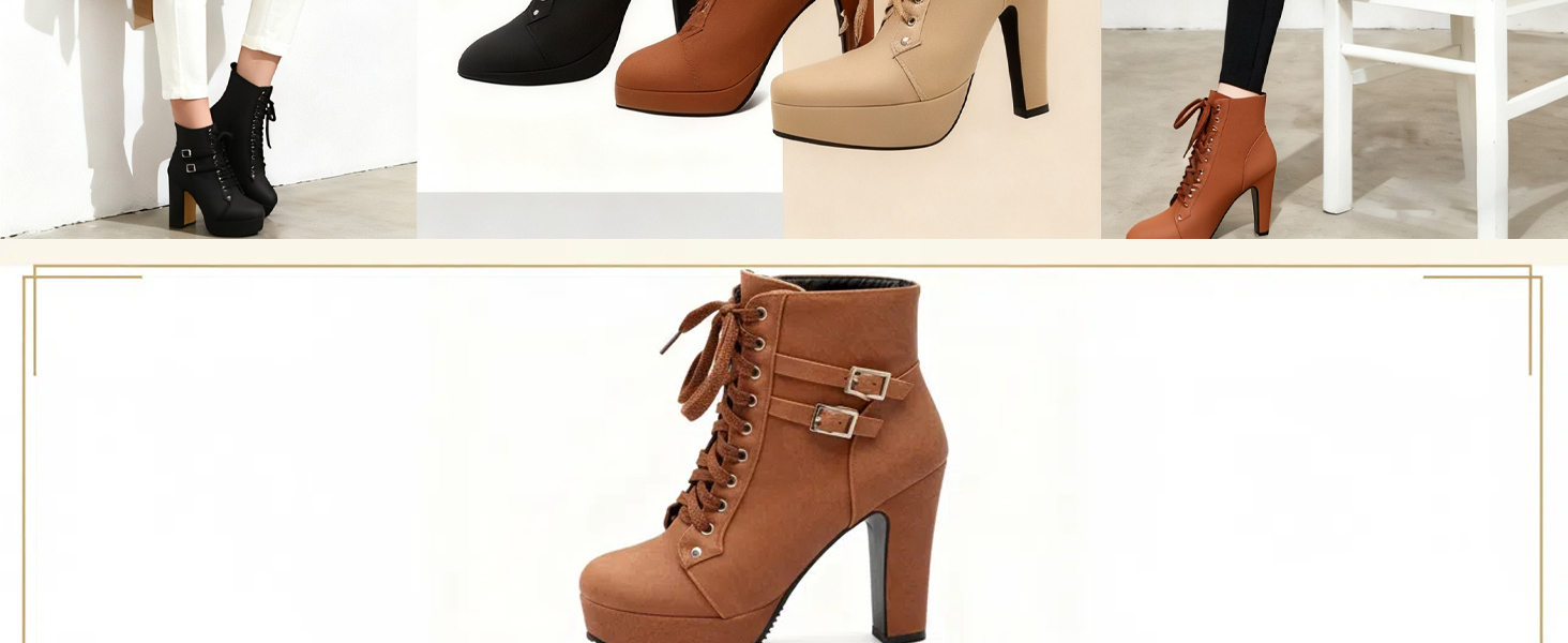 【Stylish Design】These women's high-heeled ankle boots feature a lace-up design with a double buckle for a trendy look. The 4.72-inch heel and thick sole effectively elongate the legs, creating an elegant and sexy look. Whether paired with skinny jeans or a short skirt, they instantly elevate your look and become a street style sensation.