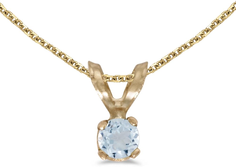 10k Yellow Gold Round Aquamarine Pendant with 16" Chain