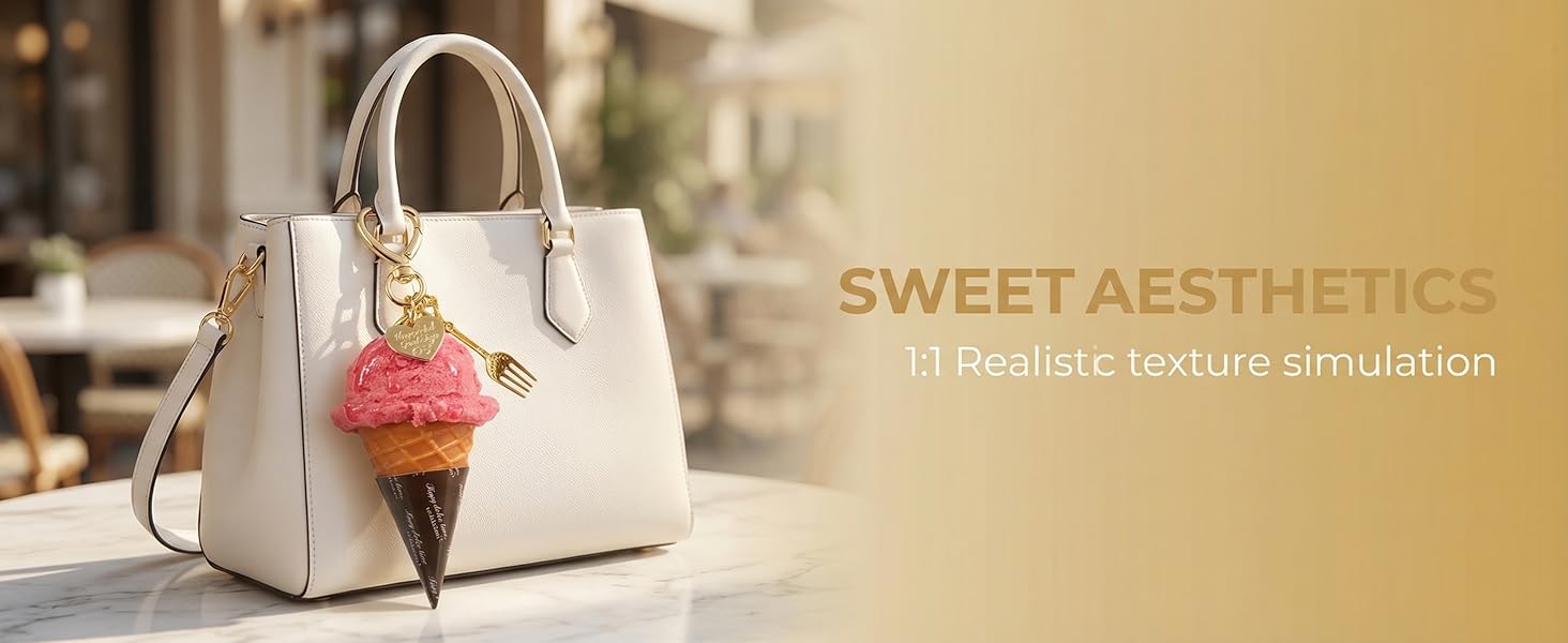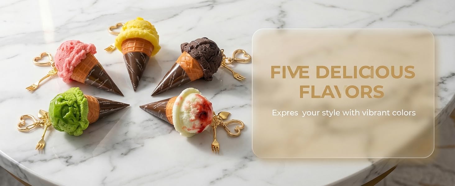 【Mouth-Watering Realistic Design】 Pick your favorite flavor! These 3D simulation ice cream keychains feature lifelike textures, from the crispy waffle cone to the glossy, melting syrup topping. Available in 5 mouth-watering flavors, they look so delicious you'll want to take a bite.