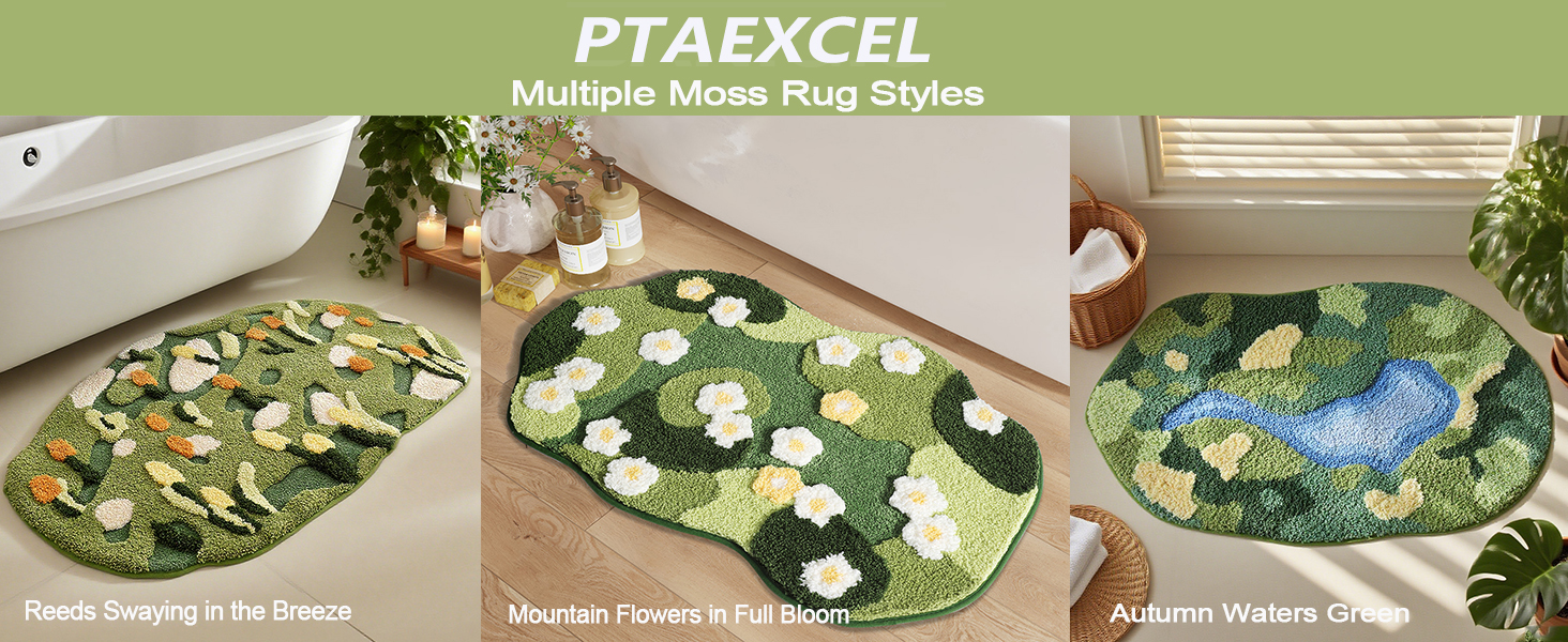 【Super Absorbent】 Say goodbye to soggy floors! Our moss bath rug is a super-absorber, quickly soaking up water after your shower or bath. It keeps your bathroom dry and tidy, ensuring a safe and clean environment while adding to the overall convenience.
