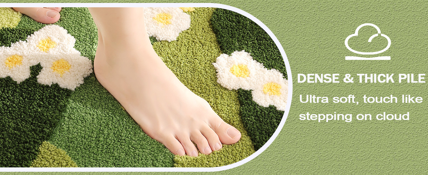 【Cloud-Soft Comfort】 Indulge your feet in unparalleled softness. Crafted with high-density microfiber materials, this thick green moss bathroom rug offers a plush, cloud-like feel that pampers your soles with every step. With fluffy and plush feature, it's the perfect way to start and end your day on a cozy note.