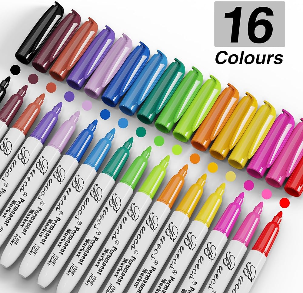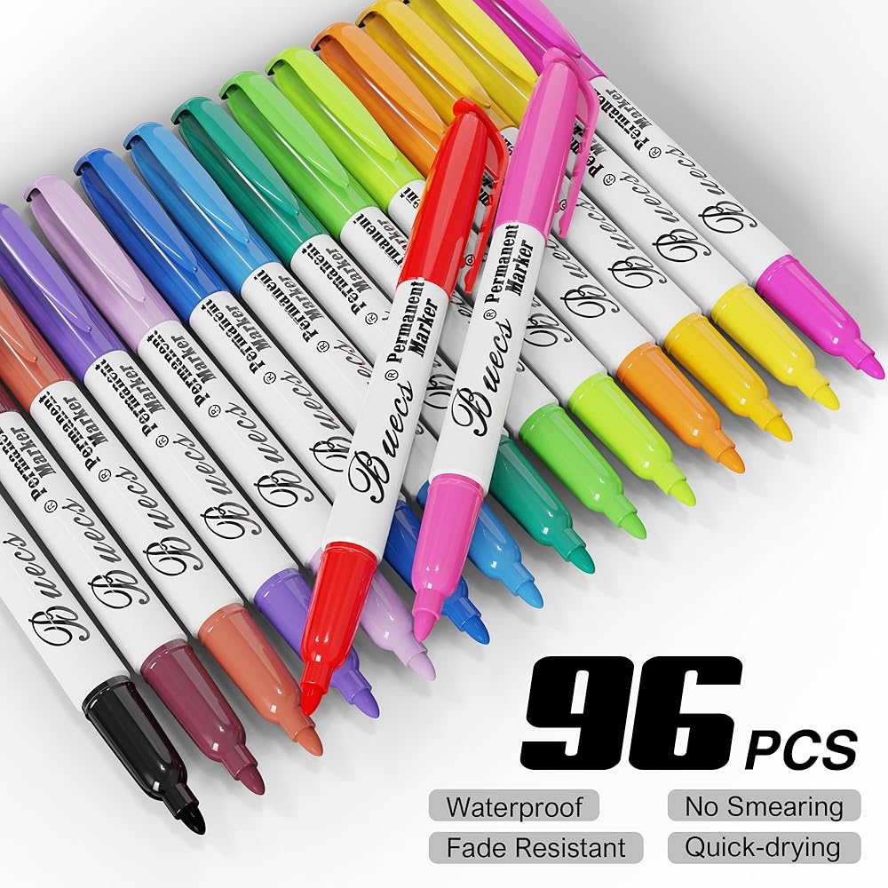 Permanent Markers, 96 Count Fine Point Permanent Markers, 16 colors, Waterproof & Smear Proof Markers, Quick Drying, Office Supplies for School, Office, Home