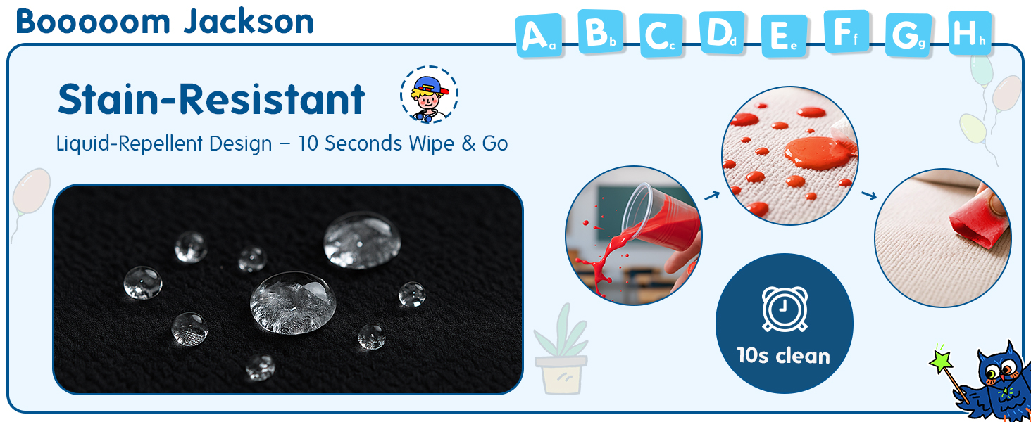 متين ومقاوم للبهتان: مصنوع من النايلون التجاري الذي اجتاز 200000 اختبار صارم، أي ما يعادل 30 طفلًا نشطًا يركضون ويلعبون عليه. لن تبهت الألوان بعد سنوات من الاستخدام، مما يخلق جوًا تعليميًا مريحًا وممتعًا للأطفال