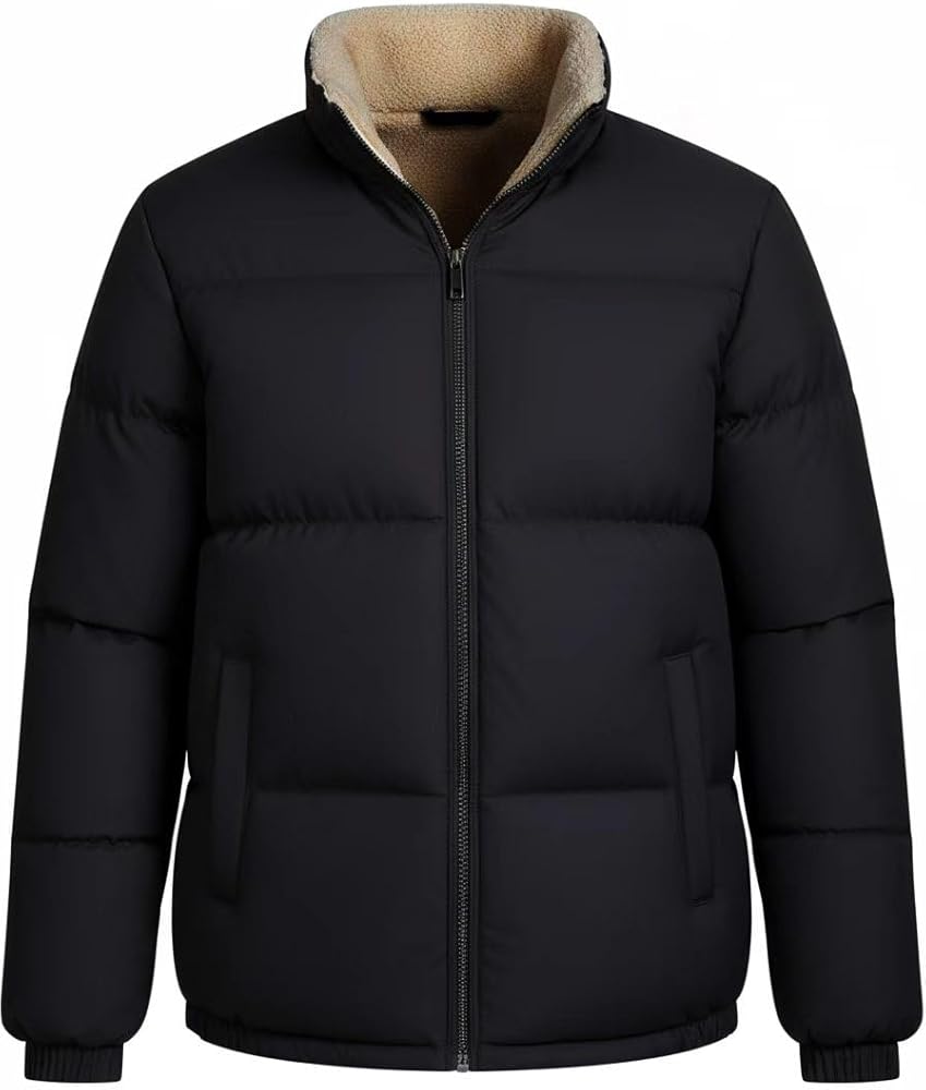 hathne Ski Puffer Fleece Jacket For Men Zip Up Padded Coat Tops Casual Outerwear