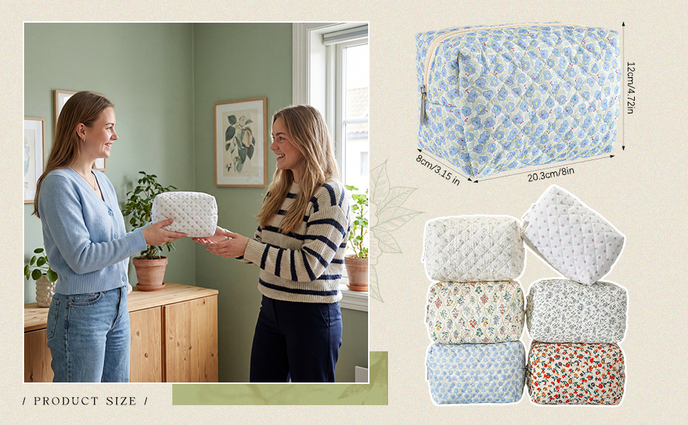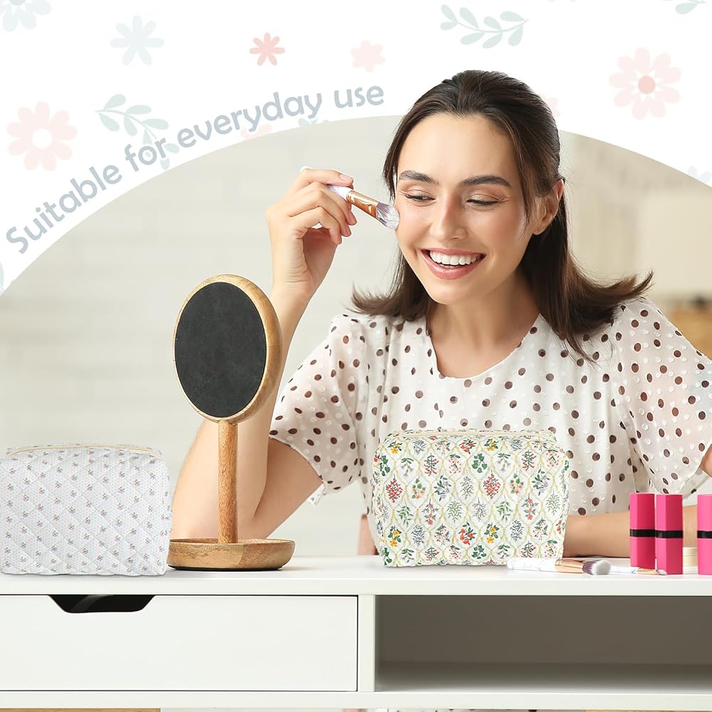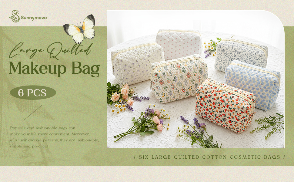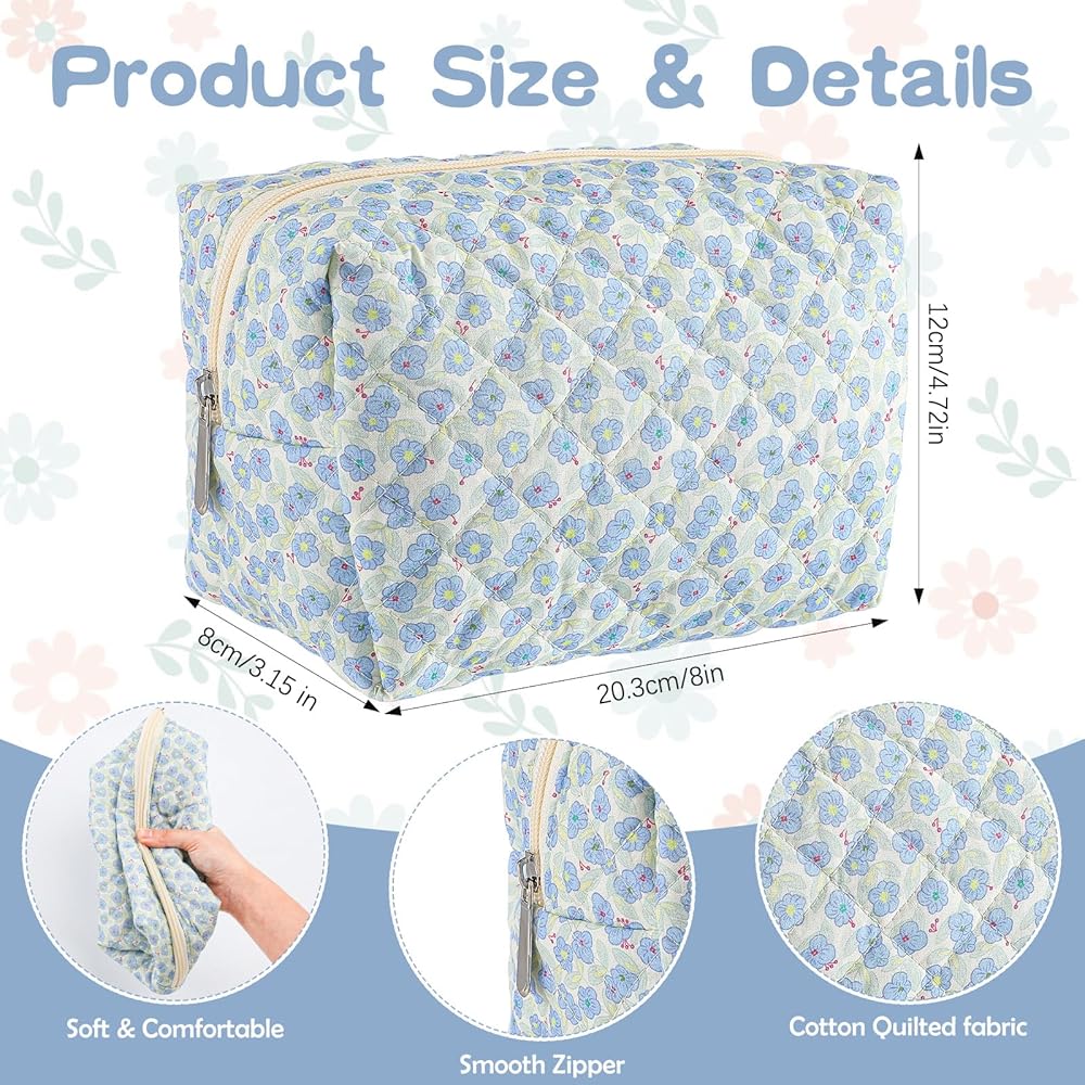 Delicate Design: the quilted flower design is adopted, and each cosmetic bag is made of soft cotton fabric, decorated with exquisite quilted flower patterns, showing exquisite handmade texture; Quilting technology enhances the structure, durability and elegance of the bag