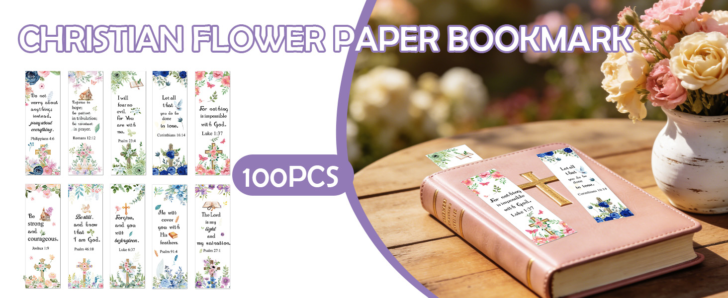 Complete Set: This 100-piece Christian bookmark set offers a variety of floral cross designs with inspiring Bible verses, providing students, church members, or office workers with enough bookmarks to organize study, reading, or devotion with style