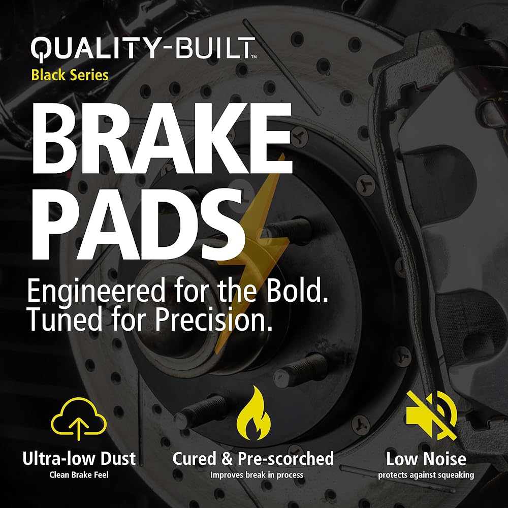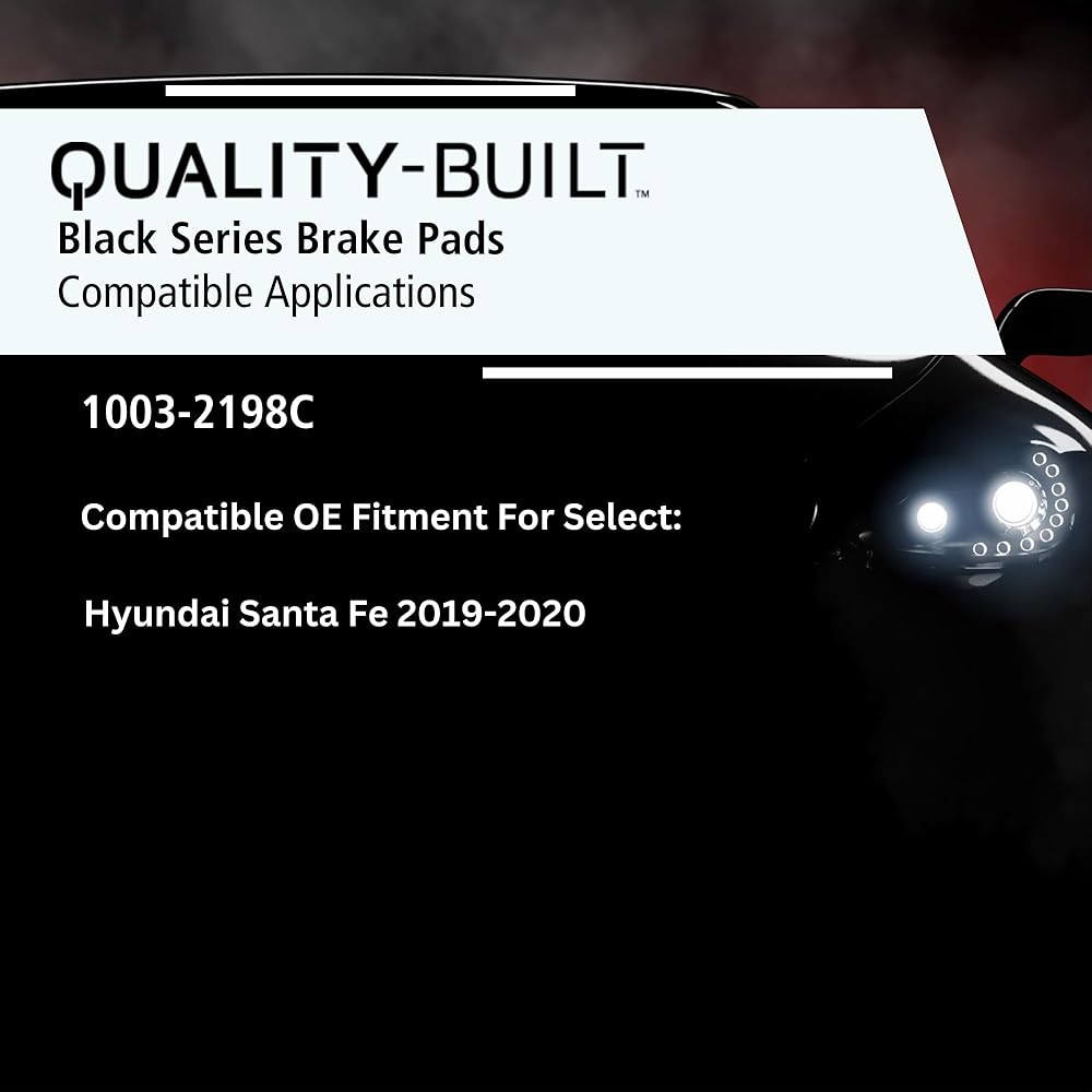 Step Up to Street-Ready Performance with the QUALITY-BUILT Black Series rear semi-metallic brake pads. For drivers who expect more from their brakes - the Black Series delivers a premium, track-inspired braking experience in a street-ready package. Designed with enthusiasts and performance-minded DIYers in mind, these rear semi-metallic pads offer more than just a factory replacement - they're an upgrade you can feel in every stop. From the moment you open the box, every detail is purpose-built: premium materials, stainless steel hardware (included where required), and precise OE fitment ensure a straightforward install with long-lasting results. Whether you're dialing in your daily or refreshing your weekend project car, installation is smooth, and results are felt immediately. Pairing ultra-quiet operation with aggressive bite, the Black Series rear semi-metallic brake pads are ideal for those who want low dust, quieter operation, and a sharper, but progressive, braking experience. These pads are built to withstand heat, resist wear, and maintain consistent pedal feel over time - no fade, no compromise. The result? Better control. Better feel. Better braking. When you want braking that matches your build - whether you're commuting, cruising or carving canyons, QUALITY-BUILT Black Series brake pads give you the performance you demand. Fits Select Models- 2019-2020 Hyundai Santa Fe