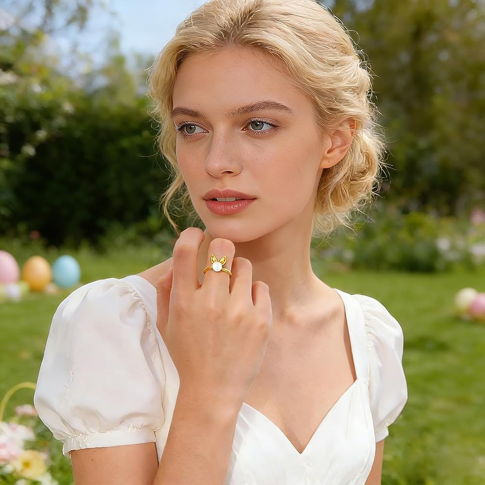 Dainty Ring for Women: Made with high-quality brass, 14k gold plated, this gold pearl ring offers a luxurious, long-lasting shine. Whether you're dressing up for an Easter egg hunt or parties, the animal ring make you stand out among the crowd.