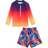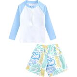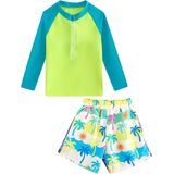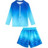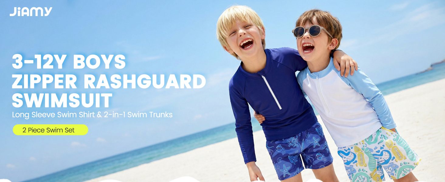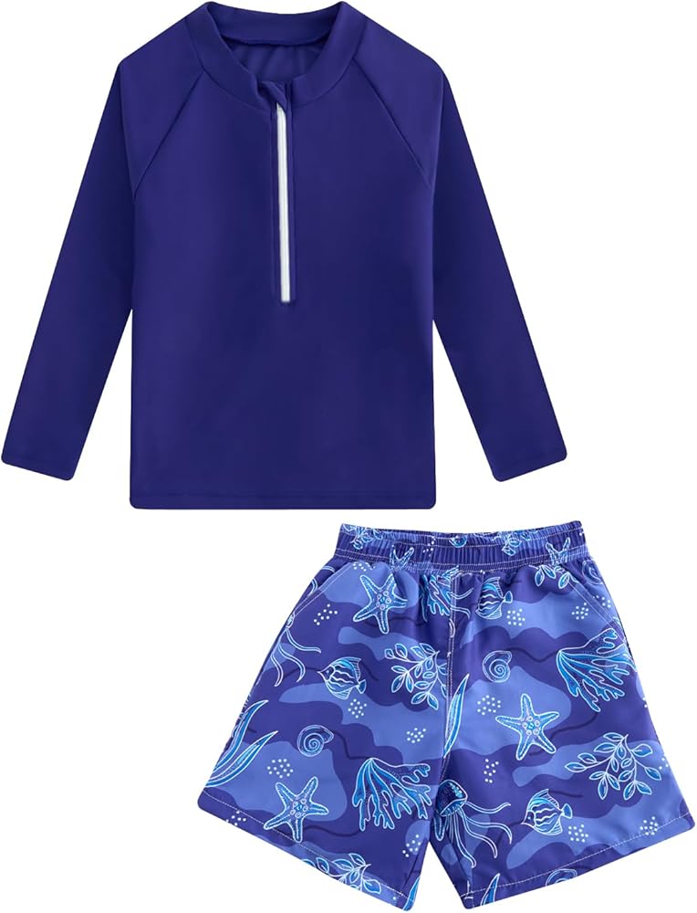 2 Piece Swim Set: Rashguard bathing suits for boys includes a long-sleeved swim shirt and swim trunks, this combination is more affordable and practical, eliminates the hassle of matching; It is the boy's preferred gift choice