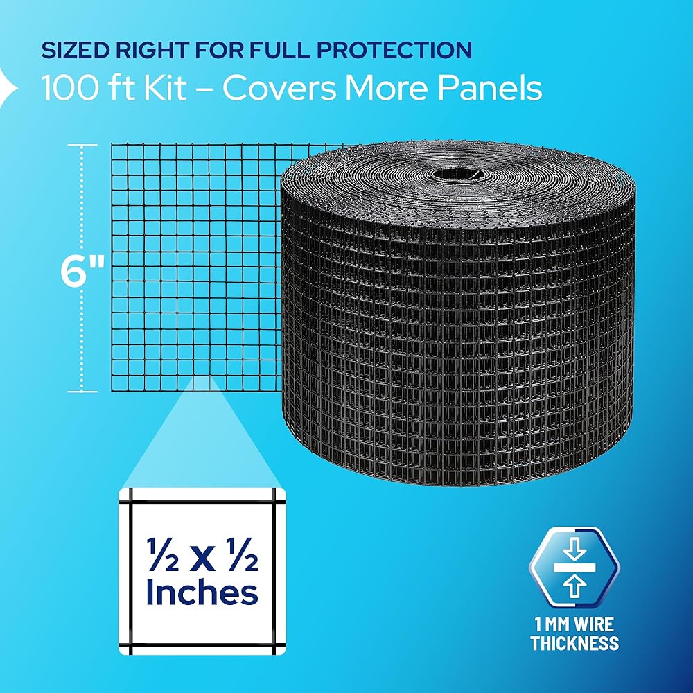 ✅ PROLONGS SOLAR PANEL LIFE: Bird proofing with 1/2" x 1/2" grid solar panel fence blocks squirrels, rodents, and debris—preserving airflow, efficiency, and panel wiring.