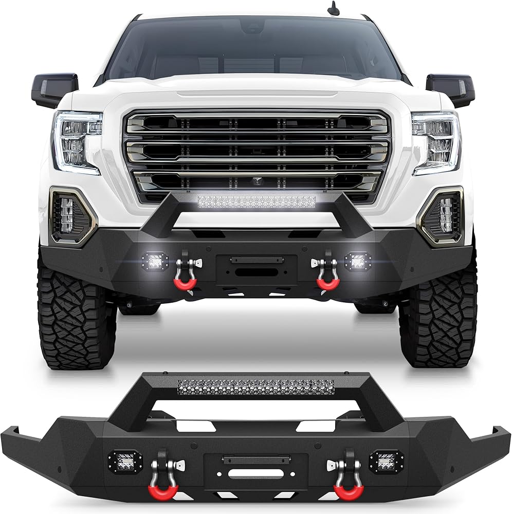 GMC Sierra 1500 Front Bumper for 2019-2022 GMC Sierra 1500 1500 Pickup, Includes Winch Plate, LED Lights and D-rings (2019 Not Fit Limited and 2022 Only Fit Limited)