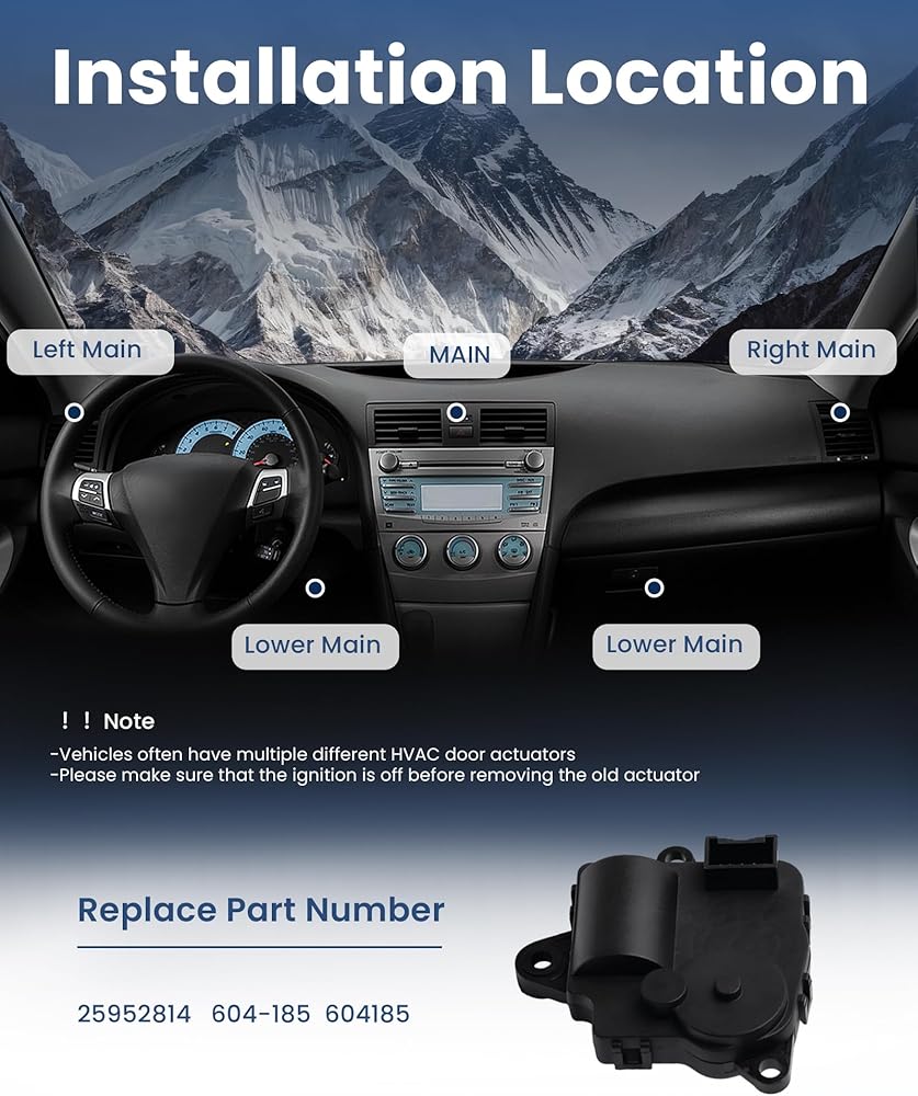 Replace Part Number: 25952814 604-185 !!Note: HVAC Heater Blend Door Actuator Fits for Mode Actuator only, doesn't fit Temperature Actuator or Air inlet Actuator