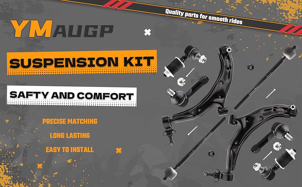 【Warranty】Our Suspension Components are Ready to Meet the Rigorous Demands of Today's Foreign and Domestic Passenger Cars, Trucks and SUVs. Undergo Impact, Wear. Please check the description and compatibility chart before your purchasing. We provide FIVE YEAR WARRANTY for all our parts. We supply Suspension kit include ball joints, Stabilizer sway bars, tie rod ends, idler arm, pitman arm, track bar, drag link, control arm assembly for front rear lower upper left right driver & passenger side.