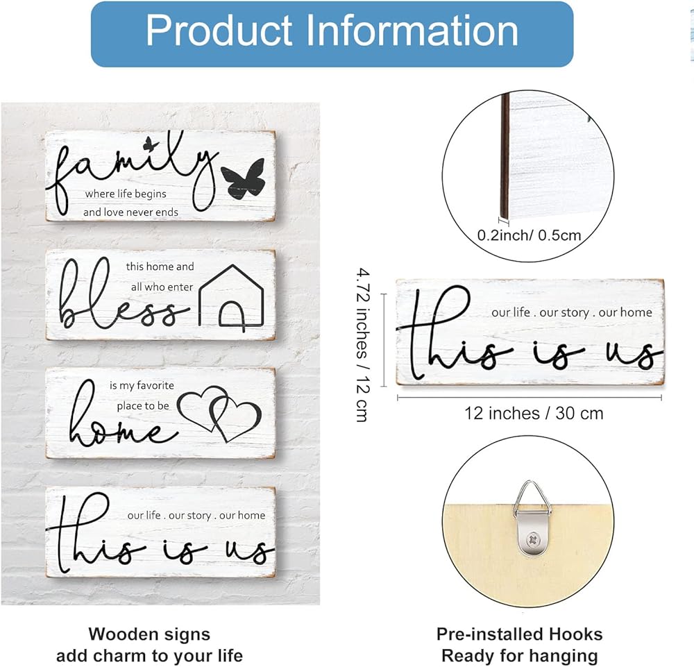 【Perfect Dimensions and Versatility】Each sign measures a versatile 11.8” L x 4.7” W – the ideal size for shelves, desktops, windowsills, or as part of a gallery wall. Easily style your mantel, kitchen counter, entryway, or office without taking up much space.